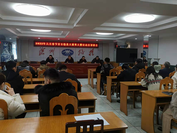2021年12月30日下午14:30,路橋公司安委會(huì)組織召開(kāi)2022年元旦春節(jié)安全隱患大排查大整治動(dòng)員部署會(huì),會(huì)上曹艷明總經(jīng)理傳達(dá)了集團(tuán)下發(fā)的關(guān)于疫情防控、安全風(fēng)險(xiǎn)隱患大排查大整治等文件精神,部署了《滄州路橋工程公司安委會(huì)2022年元旦春節(jié)期間安全生產(chǎn)風(fēng)險(xiǎn)隱患大排查大整治行動(dòng)方案》,要求各部門(mén)、子(分)公司積極落實(shí)相關(guān)責(zé)任,嚴(yán)格按行動(dòng)方案中實(shí)施步驟完成各階段任務(wù)目標(biāo),杜絕各類(lèi)生產(chǎn)安全事故發(fā)生。同時(shí),還應(yīng)提高政治站位,進(jìn)一步做好雙節(jié)期間疫情防控工作,規(guī)范來(lái)訪(fǎng)人員掃碼登記、嚴(yán)格執(zhí)行“領(lǐng)導(dǎo)帶班、雙人雙崗”值班制度,確保2022年元旦、春節(jié)、省市“兩會(huì)”、冬奧會(huì)、冬殘奧會(huì)和全國(guó)“兩會(huì)”期間公司安全生產(chǎn)形勢(shì)穩(wěn)定。