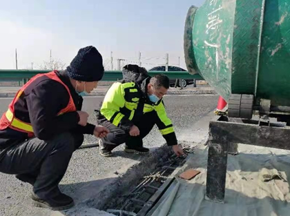 按照管理處要求,養(yǎng)護(hù)工區(qū)立即對K620和K684處橋梁伸縮縫進(jìn)行應(yīng)急維修。在疫情防控的關(guān)鍵時期,養(yǎng)護(hù)工區(qū)采用超早強(qiáng)低溫混凝土嚴(yán)格把控質(zhì)量,能夠在最短的時間內(nèi)修復(fù)此病害、降低對行車安全的影響。施工現(xiàn)場各類安全設(shè)施齊全,養(yǎng)護(hù)工區(qū)負(fù)責(zé)人全程盯緊施工進(jìn)度,保證施工時效性,加快施工進(jìn)度,確保橋梁安全和車輛行駛安全通暢。