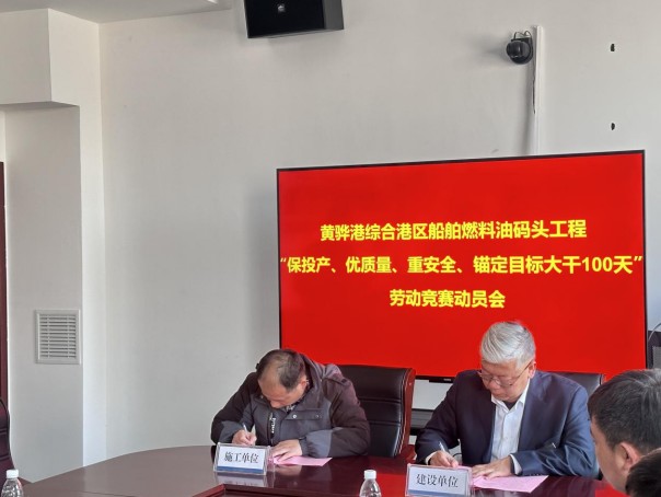 隨著“大干100天”的號(hào)令吹響,滄州渤海新區(qū)港坤船舶燃料有限公司統(tǒng)籌項(xiàng)目建設(shè)質(zhì)量和建設(shè)效率,全力以赴、拿出百分之百干勁,扎實(shí)推進(jìn)黃驊港綜合港區(qū)船舶燃料油碼頭項(xiàng)目建設(shè),2月26日組織召開(kāi)“保投產(chǎn)、優(yōu)質(zhì)量、重安全、錨定目標(biāo)大干100天”勞動(dòng)競(jìng)賽動(dòng)員會(huì)。森旭公司、港坤船舶燃料公司董事長(zhǎng)鮑衛(wèi)國(guó),公司其他班子成員及參建單位主要負(fù)責(zé)人參會(huì)。