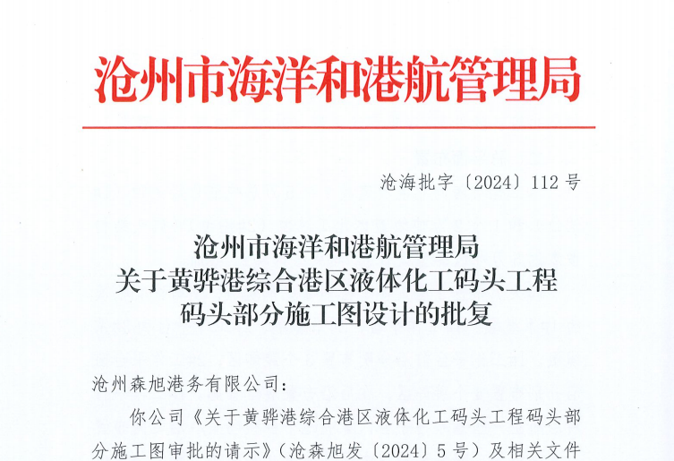 4月15日,黃驊港綜合港區(qū)液體化工碼頭工程碼頭部分施工圖設計獲滄州市海洋和港航管理局批復。此項批復標志著液體化工碼頭工程建設取得重大進展,為碼頭部分的施工奠定了堅實基礎。