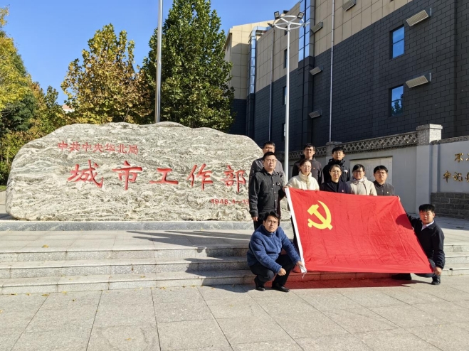 寒風(fēng)呼嘯,落葉飄飄。初冬天寒擋不住交發(fā)項管公司黨總支黨員們向革命先輩學(xué)習(xí)的熱情。11月9日,為深入學(xué)習(xí)貫徹習(xí)近平新時代中國特色社會主義思想,項管公司黨總支組織帶領(lǐng)十余名黨員和部分團(tuán)員來到中共中央華北局城市工作部舊址進(jìn)行紅色教育。
