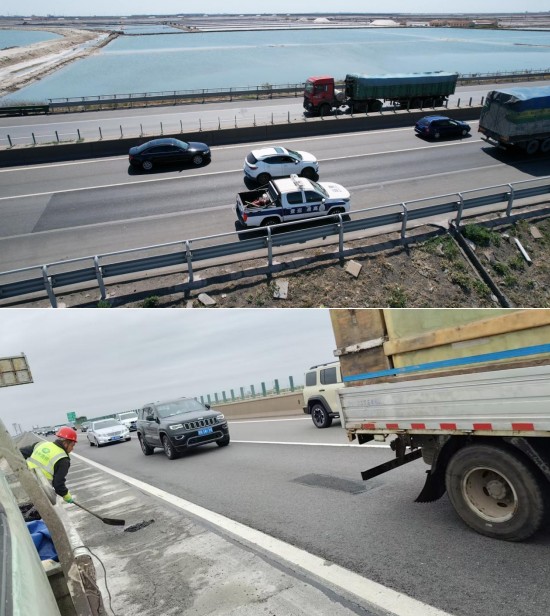 二、守護“生命線”,力保全程“不斷流”。“雙節(jié)”期間,沿海分公司職工堅守各崗位,嚴格執(zhí)行24小時值班制度和領導帶班制度,以“在崗一分鐘,盡責六十秒”的擔當,守護道路暢通。節(jié)前及假期,分公司領導班子靠前指揮,帶領業(yè)務部室人員下沉一線進行安全保暢督導,推動各項安全保暢措施落到到位。各收費站在崗人員全員上崗,車道全開,疏導員穿梭車流,引導客貨分行,ETC車道高效運轉,通行效率大幅提升。道路養(yǎng)護中心采用“路面+無人機+視頻”三維立體巡查模式,累計開展道路巡查40余次,無人機巡檢9次,巡查里程超4500余公里,投入保暢人員170余人次,清理散落物210余次,對雨天路面水毀病害進行應急搶修5次,全力保障社會公眾安全出行。