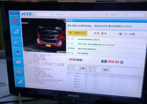 經(jīng)刷卡顯示該車入口信息為山東蘭陵北站,應(yīng)繳費808元。當班收費員提示司機繳費后,司機以運輸鮮活農(nóng)產(chǎn)品為由要求免費通行。