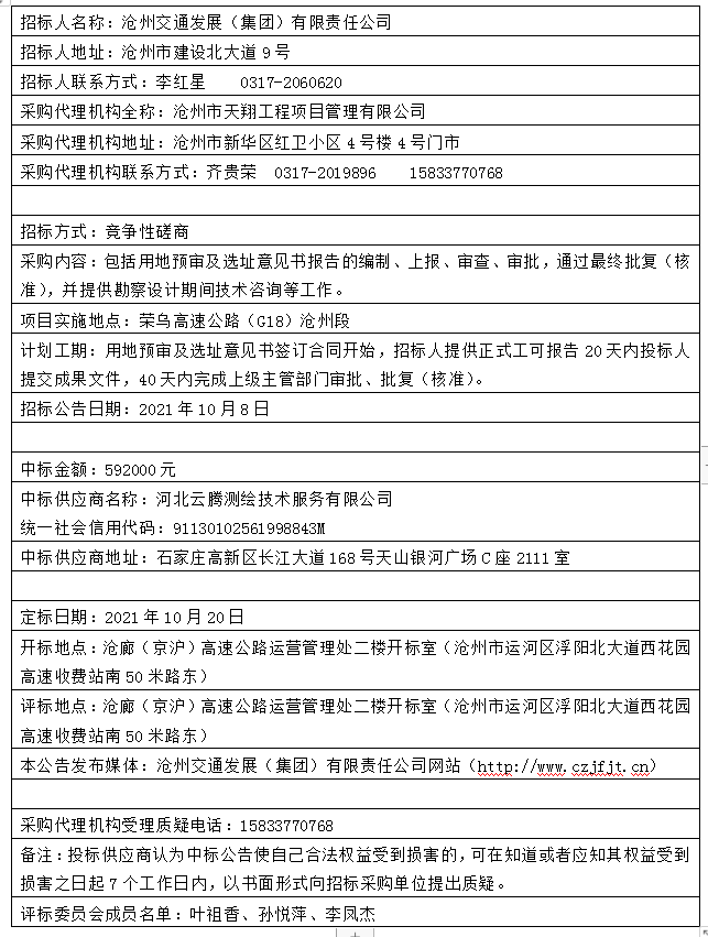 招標(biāo)項(xiàng)目名稱:榮烏高速公路(G18)滄州段改擴(kuò)建工程用地預(yù)審及選址意見書編制單位采購(gòu)