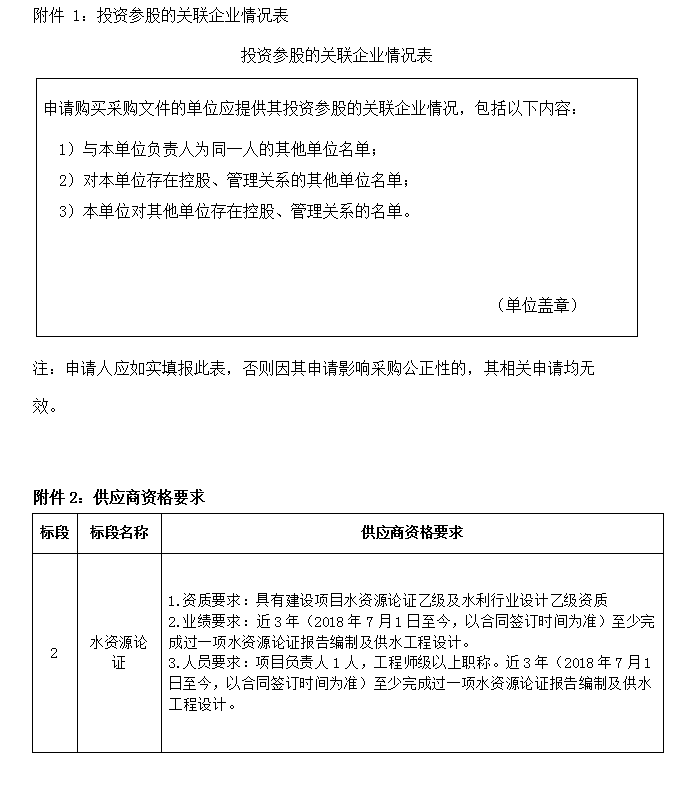 (一)項(xiàng)目概況及采購范圍:水資源論證報(bào)告的編制、上報(bào)、審查、審批,通過批復(fù)(核準(zhǔn)),并提供勘察設(shè)計(jì)期間技術(shù)咨詢等工作。采購內(nèi)容包括水水資源論證及供水工程設(shè)計(jì)。如采用打井方式取水,要求取得有關(guān)行政主管部門的批準(zhǔn)文件,如采用其他方式取水則需編制供水工程初步設(shè)計(jì)。